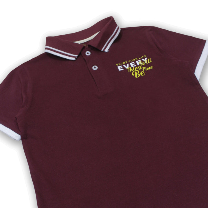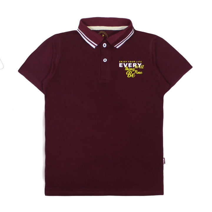 Elevate your child's casual wardrobe with our Boy Maroon Enjoy your life Polo shirt. With high Density Printing. This stylish polo is perfect for any occasion, offering a blend of comfort and sophistication. Made from high-quality fabric, it ensures your child stays comfortable all day long while looking effortlessly cool.