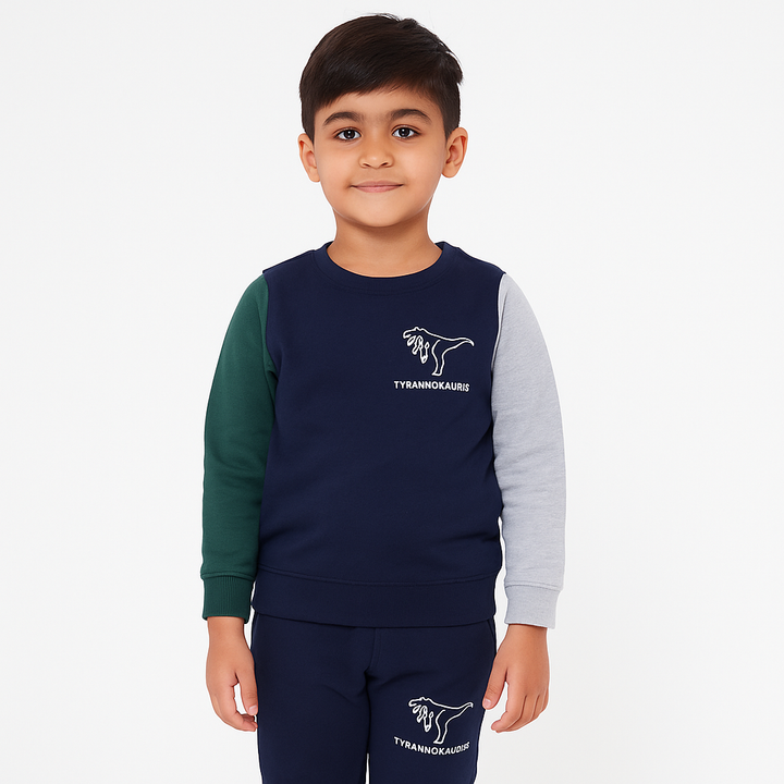 Keep your little one cozy and stylish with our Boy Navy Tyrannosaurus 2 Pc Set This adorable set includes a super soft sweatshirt and trousers, featuring a Tyrannosaurus Text with High Density print. Made from high-quality Fleece Fabric, it ensures warmth and comfort for your child.