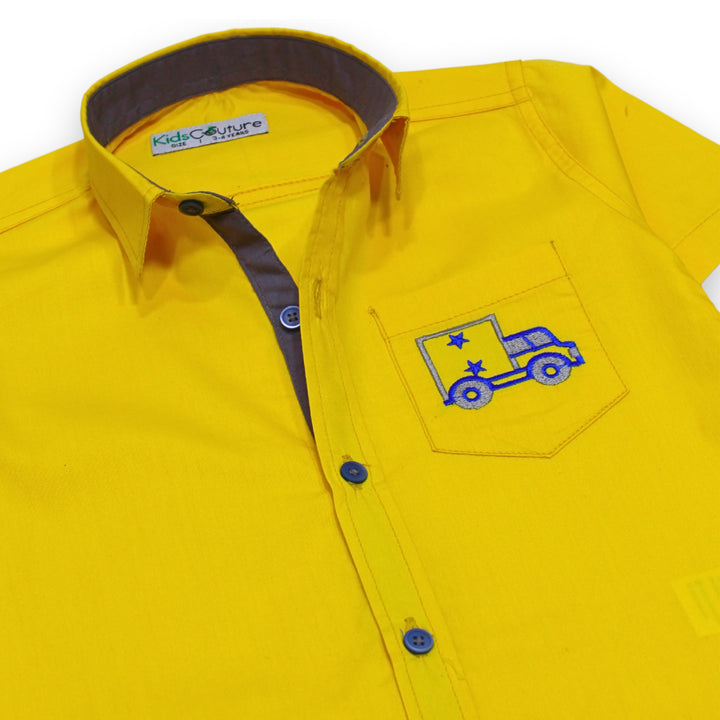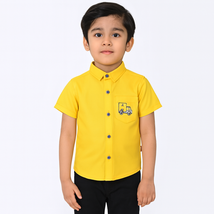 Add a pop of freshness to your little one's style with our casual Yellow shirt! Soft, breathable fabric and a fun embroidery design make it perfect for playtime. A bright and adorable choice for your baby boy