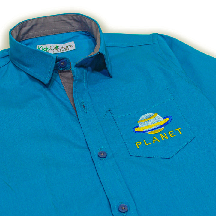 Add a pop of freshness to your little one's style with our casual Ferozi shirt! Soft, breathable fabric and a fun embroidery design make it perfect for playtime. A bright and adorable choice for your baby boy