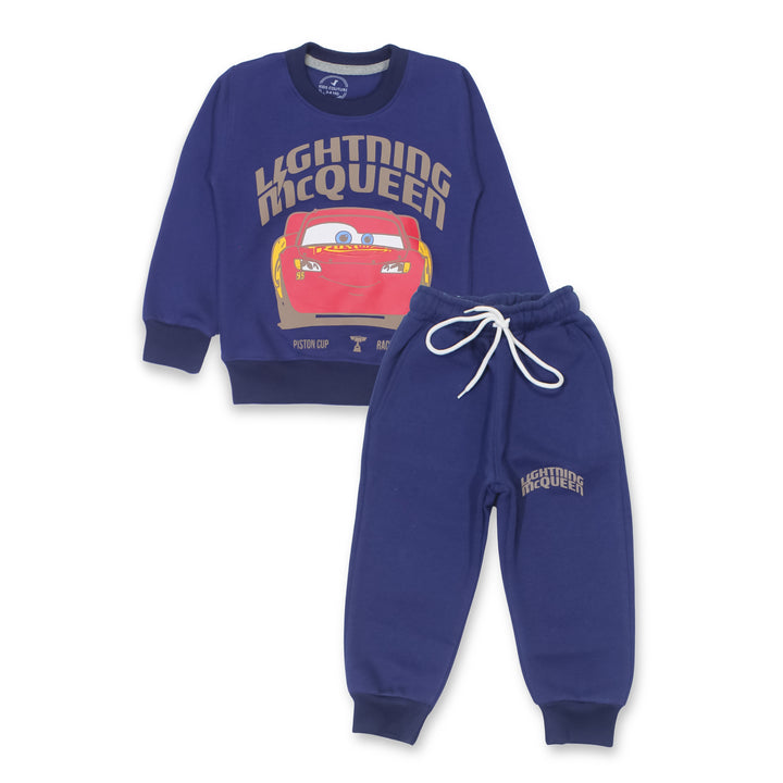 Keep your little one cozy and stylish with our Navy Lightning Mcqueen 2 Pc set! This adorable set includes a super soft sweatshirt and trousers, featuring a cute Mcqueen print. Made from high-quality fleece, it ensures warmth and comfort for your child.