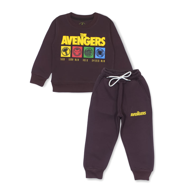 Keep your little one cozy and stylish with our Boy Dark Brown The Avengers 2 Pc set! This adorable set includes a super soft sweatshirt and trousers, featuring a cute Disney Avengers Characters print. Made from high-quality fleece, it ensures warmth and comfort for your child.