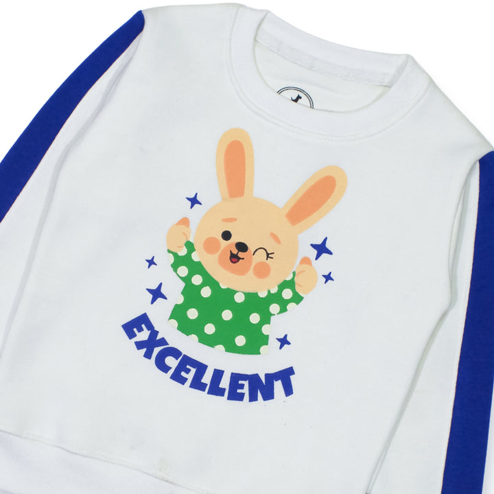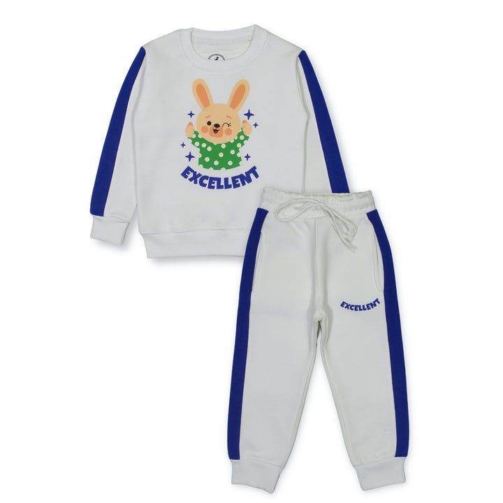 Keep your little one cozy and stylish with our Boy Excellent Blue Stripes 2 Pc set! This adorable set includes a super soft sweatshirt and trousers, featuring a cute Bunny Characters print. Made from high-quality fleece, it ensures warmth and comfort for your child.