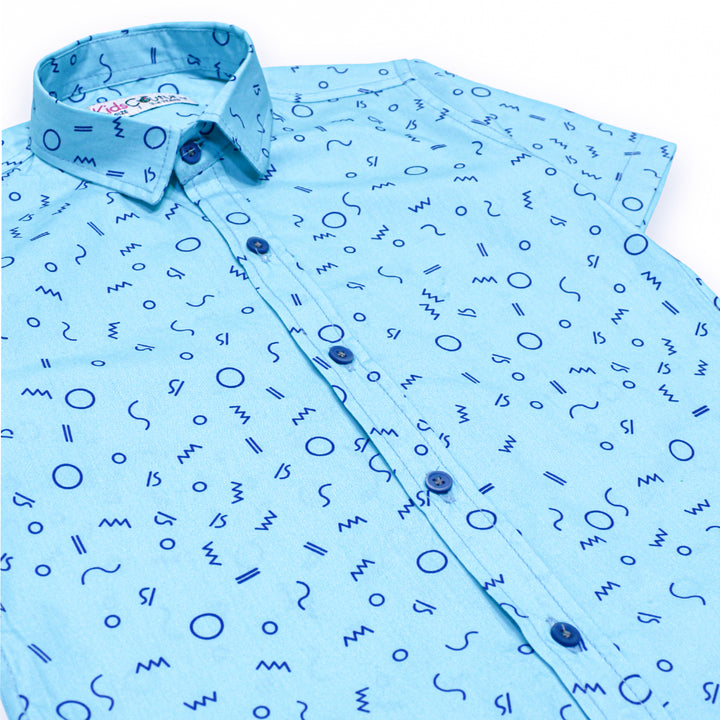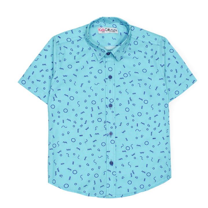 Add a pop of freshness to your little one's style with our printed casual blue shirt! Soft, breathable fabric and a fun Geometry design make it perfect for playtime. A bright and adorable choice for your baby boy
