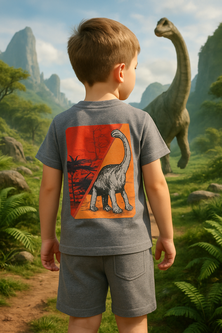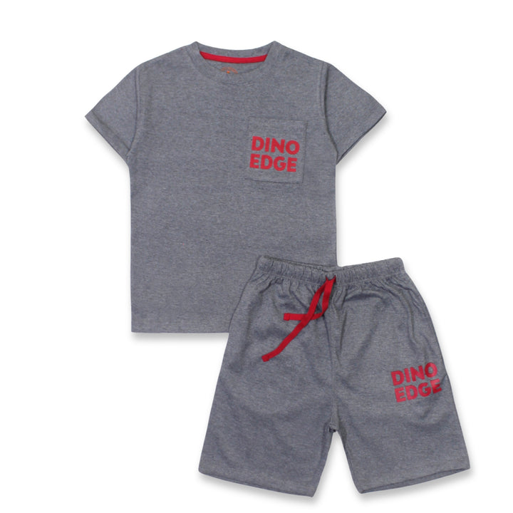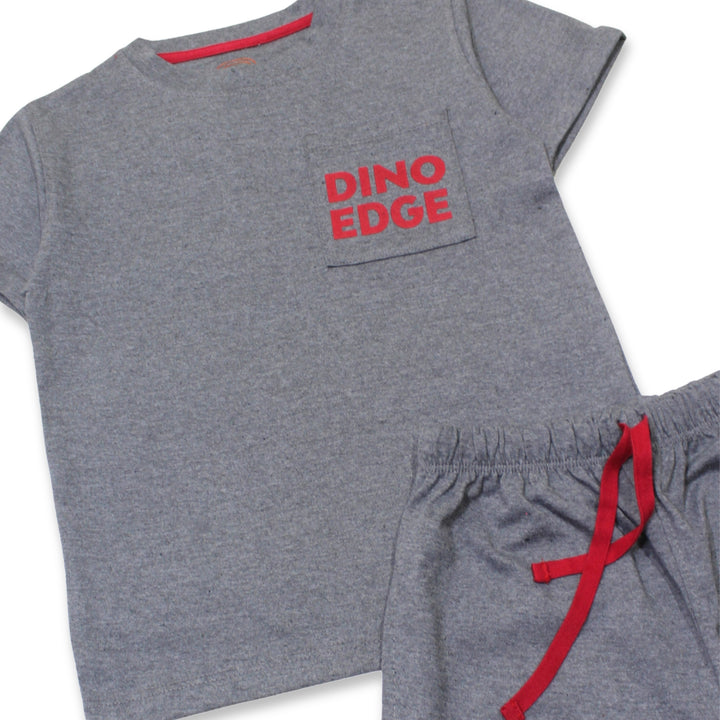 An ultra-soft, premium quality Boy Gray Dino Edge 2 Pc set kids best thing 2-piece set consisting of a cotton jersey fabric T-shirt and shorts by Kids Couture. Non-allergic fabric gentle to baby's skin. Perfect for the summer season