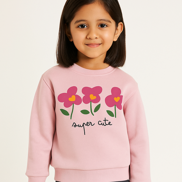 Add this delightful 🌟 Girls Pink Super Cute Flower Sweatshirt to your cart now and give your little one the gift of warmth and style!