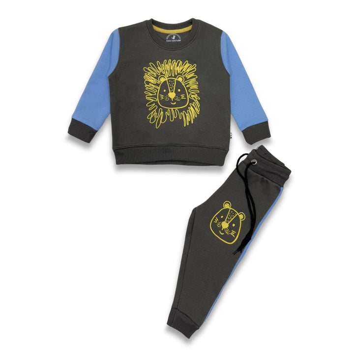 Roar into cozy comfort with our Boys Fleece Gray Lion 2 Pc Set. This adorable set includes a warm fleece jacket and matching pants, perfect for keeping your little one snug and stylish during colder days.