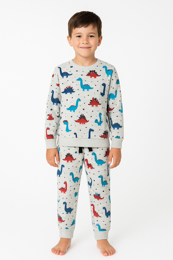 Ignite your child's imagination with our Dino Printed Pair. This delightful 2-piece set includes a cozy top and matching pants, featuring a fun and vibrant dinosaur print that brings prehistoric adventure to life.