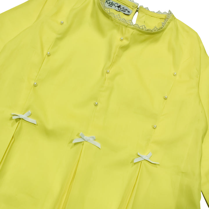 Add a pop of color to your child's wardrobe with our Girls Light Yellow Bow Top. This vibrant top features a 3 Quarter Arms and is crafted from premium Cotton fabric, offering both style and comfort for your little one
