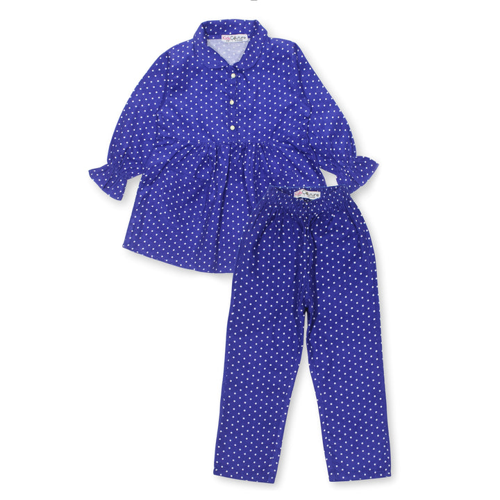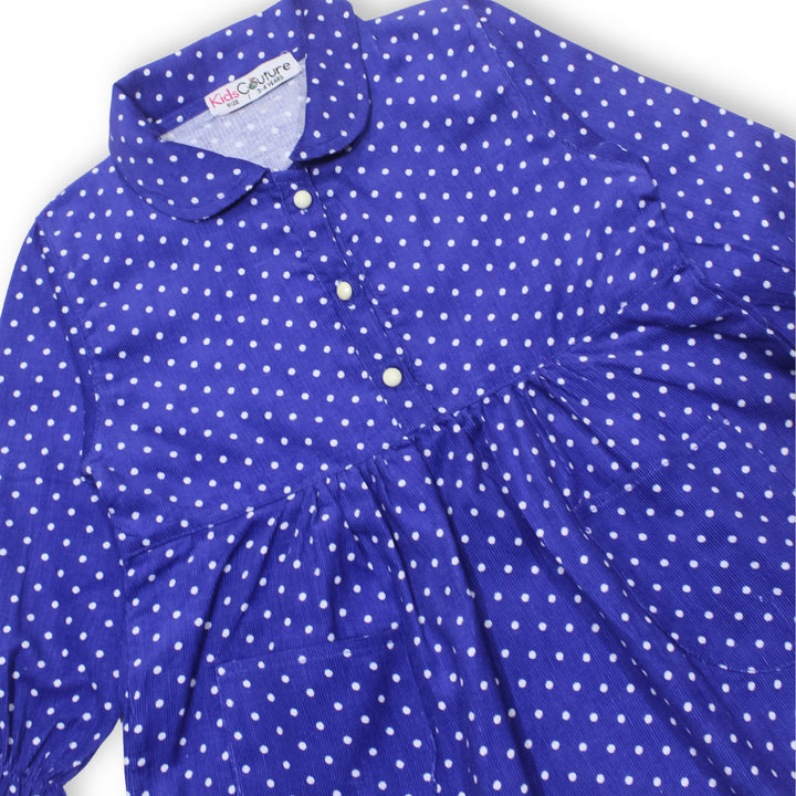 Girls Royal Blue Corduroy Doted Pattern 2 Pc set 243