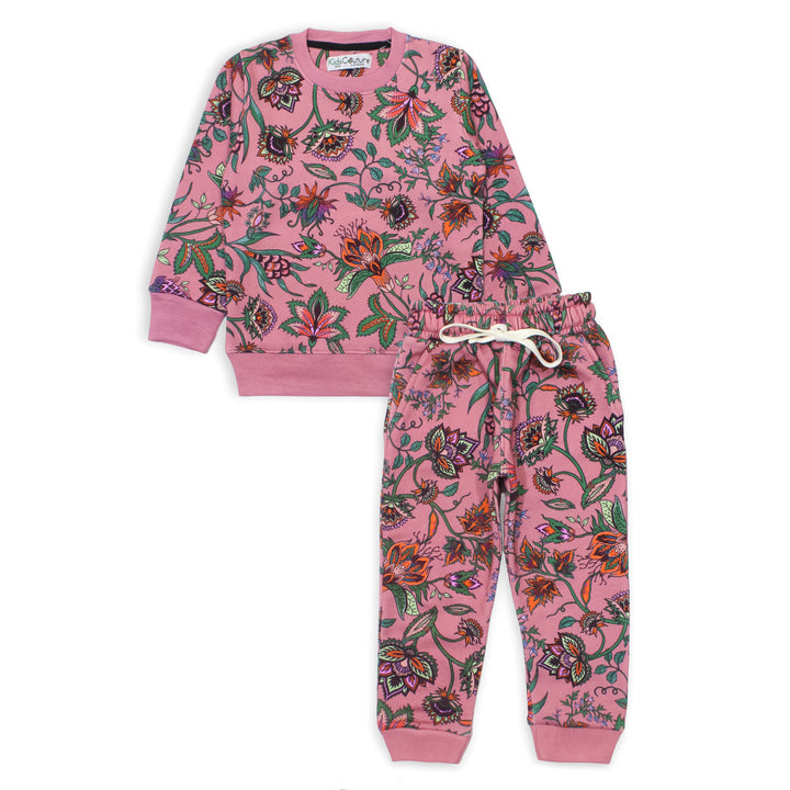 Keep your little one cozy and stylish with our Girls Pink Tropical Bloom Print 2 Pc set! This adorable set includes a super soft sweatshirt and trousers, featuring a cute Tom & Jerry print . Made from high-quality fleece, it ensures warmth and comfort for your child.