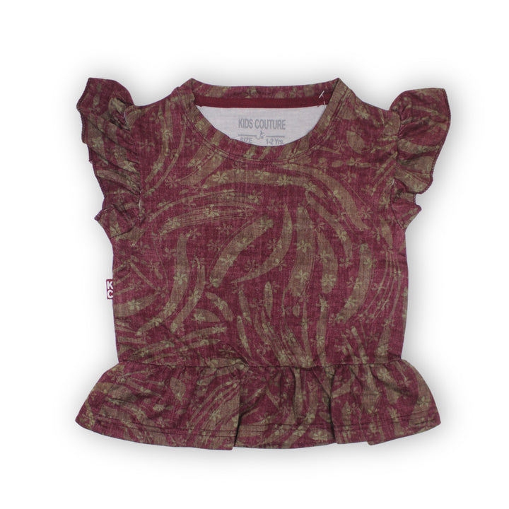Girls Maroon Frill Ruffle Top 156