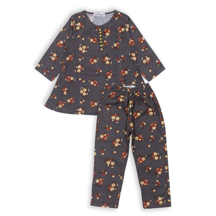 Girls Dark Gray flannel Flower Print 2 Pc set 242