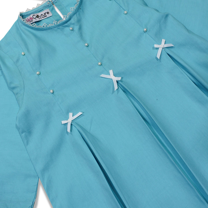 Vibrant Style:ย Girls Aqua Blue Bow Top adds a lively and energetic element to your child's wardrobe.