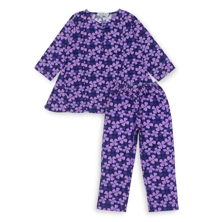 Girls Blue flannel Flower Printed 2 Pc set 242