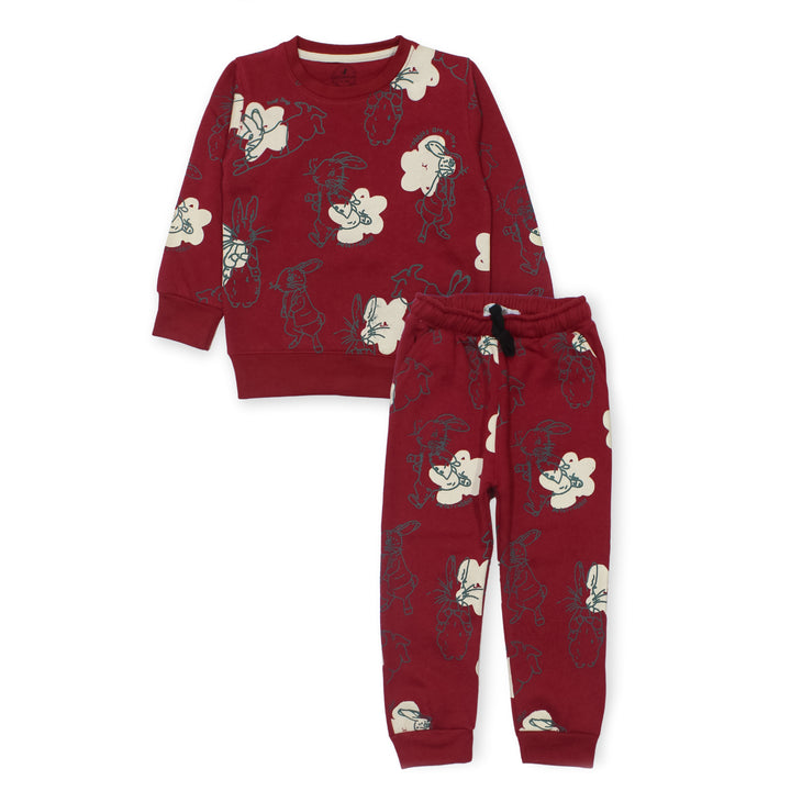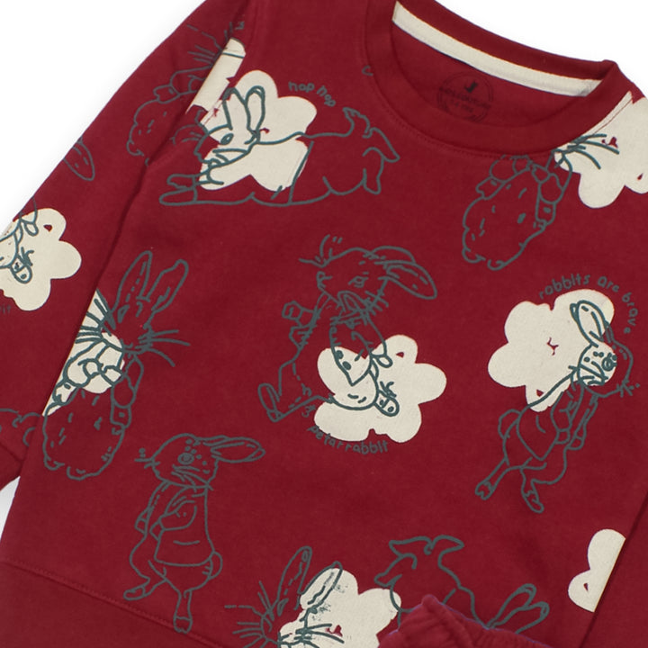 Keep your little one cozy and stylish with our Girls Dark Red Rabbit Pattern 2 Pc set! This adorable set includes a super soft sweatshirt and trousers, featuring a cute Rabbit print . Made from high-quality fleece, it ensures warmth and comfort for your child.
