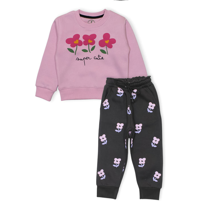 Keep your little one cozy and stylish with our Girls Pink Super Cute Flower 2 Pc set! This adorable set includes a super soft sweatshirt and trousers, featuring a cute Flower print . Made from high-quality fleece, it ensures warmth and comfort for your child.