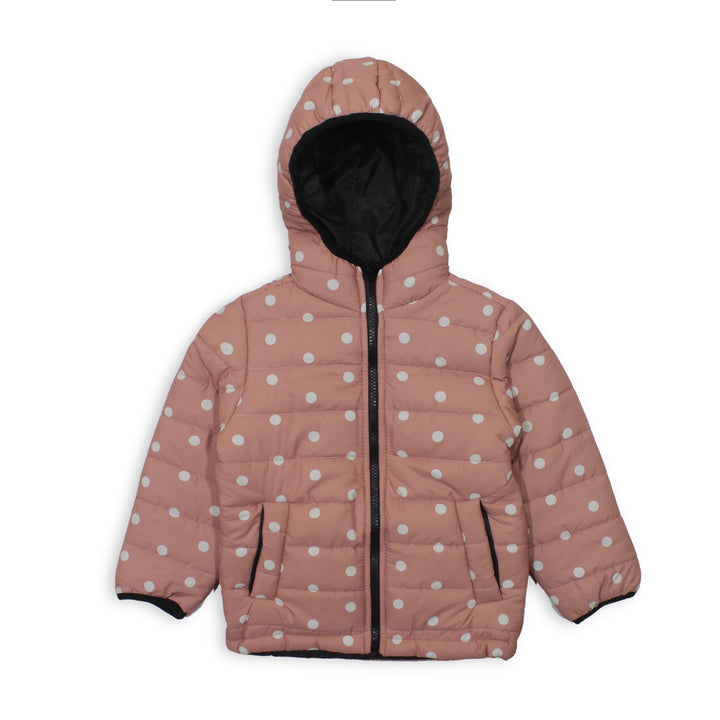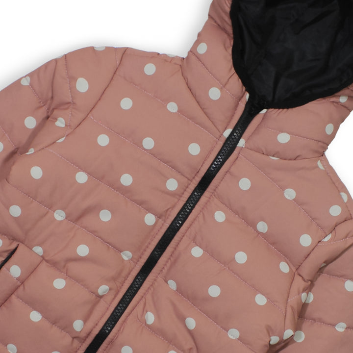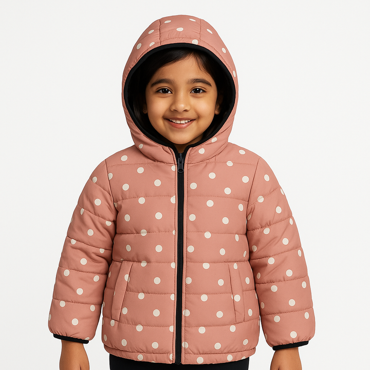 Keep your little one cozy and stylish with this trendy Girls Pink Polka Dot Hoodie Jacket. Designed with a quilted padded finish, it provides warmth without feeling too heavy. The jacket comes with a soft hood lining for extra comfort on chilly days.