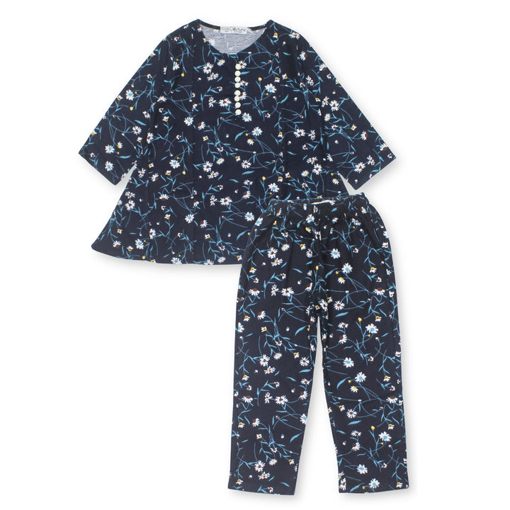 Girls Navy flannel Flower Printed 2 Pc set 242