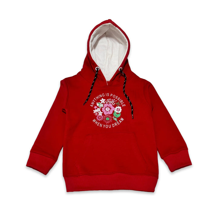 Enhance your child's style with our Girls Red Hoodie Printed and enjoy the perfect blend of quality, comfort, and playful design. 😊