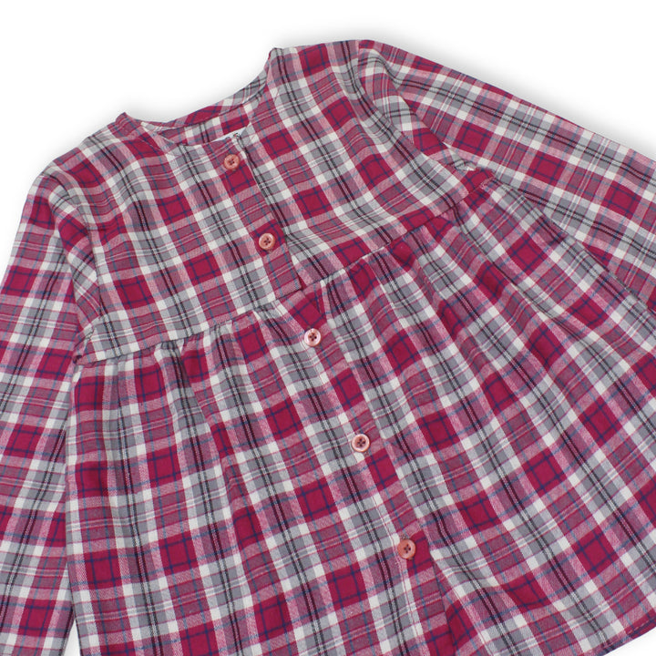 Enhance your child's style with our Girls Light Maroon Top Multi Cheak and enjoy the perfect blend of quality, comfort, and playful design. π