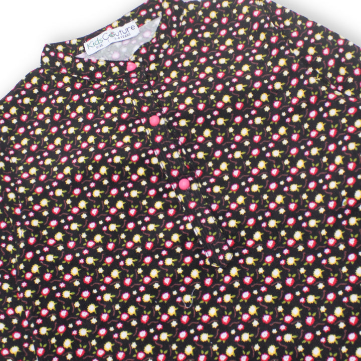 Girls Black Corduroy Flower Pattern 2 Pc set 243