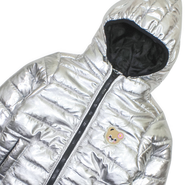 Girls Shiny Silver Puffer Jacket with Hood 247