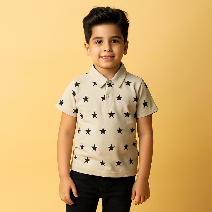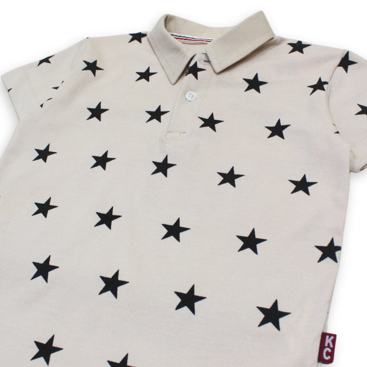 Elevate your child's casual wardrobe with our Off White Star Printed Polo by KC. This stylish polo is perfect for any occasion, offering a blend of comfort and sophistication. Made from high-quality fabric, it ensures your child stays comfortable all day long while looking effortlessly cool.