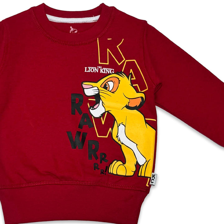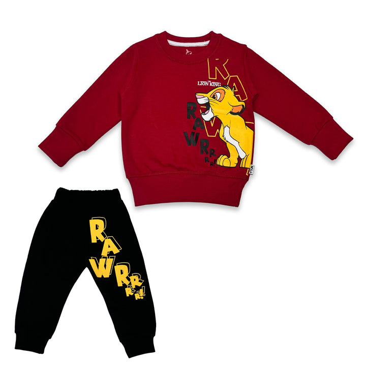 Keep your little one cozy and stylish with our Red Fleece Pair Rawr 2pc set! This adorable set includes a super soft red sweatshirt and black trousers, featuring a cute "Rawr" print inspired by the Lion King. Made from high-quality fleece, it ensures warmth and comfort for your child.