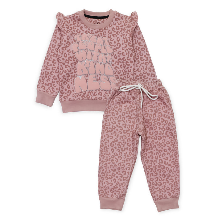 Keep your little one cozy and stylish with our Pink Treat People with Kindness 2 Pc set! This adorable set includes a super soft sweatshirt and trousers, featuring a cute Puff print. Made from high-quality fleece, it ensures warmth and comfort for your child.